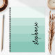 This trendy modern design features five color block stripes in gradient tints from light to medium aqua. Personalize it with your name in vertical black signature handwriting script.
