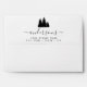 Personalized White 5x7" envelope with Signature Script and pine tree images.