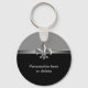 Personalize these Silver Black Fleur de Lis key chains to commemorate your special event or personal moment. The key chains feature a faux metal Fleur de Lis on a gray and black background.