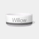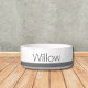 A personalized pet dish in shades of gray and white. Your pet's name is set in a modern gray font above a border of coordinating shades of gray.