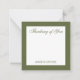 Personalized stationery enclosure notecard with a green border in notes of deep forest sage olive garden green with the sentimental words "Thinking of You". Tuck it into a flower bouquet or meaningful gift. These minimal flower shop inspired enclosure cards bring a retro kitchen vibe to your most thoughtful moments.