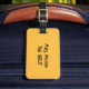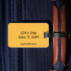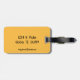Personalized luggage tag on a warm yellow solid color background. Add your name, home address, and email address or any other details as you wish.