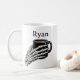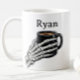 Personalized mug featuring a skeletal hand holding a coffee cup, with a custom name printed above the illustration. A simple inside joke from imaging culture and a fun appreciation gift for radiology and radiography staff, including radiographers, radiologists, and anyone who works in a radiology department. The skeletal illustration also gives it a subtle Halloween or spooky-season feel, making it a playful gift beyond the workplace.