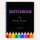 Black background, colorful design for your sketches. Personalize with your name and number. Enjoy drawing!