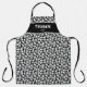 This "Skull" apron features a white skulls pattern with a name and a title.