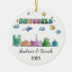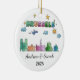 A Personalized Travel Souvenir Ornament designed to celebrate your unforgettable trip. Whether you went for work, enjoyed a romantic getaway, or took part in a school exchange program, this ornament commemorates a special moment you’ll always cherish and want to remember for years to come. This vibrant skyline ornament featuring cityscapes, dreamy clouds, and twinkling stars. Perfect for travelers and city lovers alike!