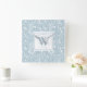 Personalized Slate Blue and White Floral Square Wall Clock