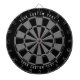 Sleek dark colored dartboard design with 2 lines of your custom text in white font.