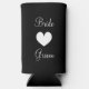 Personalized slim seltzer can cooler for wedding party. Personalize with custom name of bride and groom. Black and white or custom colors. Heart icon can be changed too.