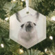 I like the look and the weight of this glass Christmas ornament. It came with a white ribbon for hanging. It's very shiny on the front and a little more matte on the back where it was printed. Looks nice on the tree with a light behind it. The printing is very good for being done on glass. I think it could be a tad bit darker in some areas compared to the product view on the site. But I guess light colors would be problematic on a translucent surface no matter what. I'm happy with it.