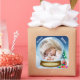 Send out a memorable Christmas card with these personalized "Special Delivery" snow globe photo Christmas stickers or envelope seals. They have a blue and white glass and wood look snowglobe on it that you can upload your own SQUARE cropped digital photo to. Add the name of the child and the year in the text boxes provided or personalize it how you want. the winter scene is completed with snowy hills and a starry night sky, with a snow covered evergreen tree with brightly wrapped gifts, ornaments, and presents below the tree. If you need any help customizing these adorable stickers, email niteowlstudio@gmail.com for assistance.