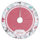 Wintery, holiday snowflakes, reindeer, ornaments and trees are the background for this chic, classy, personalized Christmas tree skirt. Holiday blue, red, and gold make this an elegant finishing touch for your special Christmas tree.