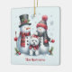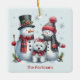 Personalized Snowman Couple with Westie Christmas ornament with one line personalization on front and two lines of personalization on back.