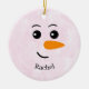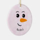 Lightweight, smooth, pure white ornament with nice sheen. Perfect size to be seen from across the room ... and to attract closer inspection! Price was great for ordering enough for the whole family! Clear, bold black design just as requested. Matches the order exactly. Just so nice!