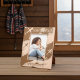 This wooden etched frame was the perfect one to frame a picture of our deceased son, who was an avid golfer. We gave it to his brother for Christmas, and he cried and smiled. Frame is sturdy and etching is as good as it gets on wood!