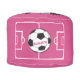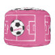 A fun soccer ball design fully customizable with your own name or text, featuring a soccer ball on a girly pink soccer pitch. Personalize the custom text is in a coordinating pink. Ideal gift for the soccer player in your life.