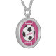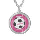 Personalized Soccer Ball and Field Pink Silver Plated Necklace