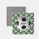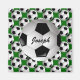 A football soccer ball design which is fully customizable with your own name or text. The background features a pattern of soccer balls on a football pitch green. Ideal for any soccer player, football coach or soccer fan.