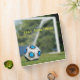 Soccer themed binder with a soccer ball on the grass waiting to be kicked into the goal. Personalize with your player's name.