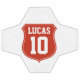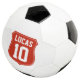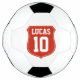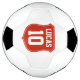 Personalized soccer ball with jersey number or age. Cute Christmas or Birthday gift idea for sporty boys and girls who love playing soccer / football. Athletic typography design with red shield emblem logo. Add your own name, sports quote or monogram. Make your own fun favor for a children's Birthday party. Add your own text for grandson, son, grandchild, granddaughter, daughter, nephew, cousin etc. Also great as thank you gift to futbol coach, soccer mom, soccer dad etc.