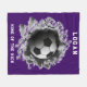 Creative soccer-themed gift blanket featuring a flying soccer ball. To personalize edit text to add soccer player, coach or team sports fan's name.