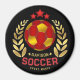 This round magnet is designed to add both personality and visual impact to refrigerators, lockers, and other metal surfaces. It features a bold central ball pattern in rich red and yellow tones, framed by elegant gold laurel branches and accented with star elements for a classic achievement-inspired look. The deep black background enhances contrast and makes the artwork stand out clearly. The magnet offers a customizable text area, allowing it to be personalized for individuals or teams, making it a thoughtful keepsake that combines decorative style with everyday practicality.