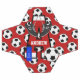 Treat the future soccer star in your life to one of these personalized monogram soccer ball momento. Featuring the Letter A with a template for the name to be added . Hanging from the letter A is a pair of soccer cleats, with a initialed water bottle and soccer ball either side. Background feature matching red as in the Initial and black and white soccer balls.