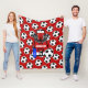 Treat the future soccer star in your life to one of these personalized monogram soccer Throw blanket. Featuring the Letter A with a template for the name to be added . Hanging from the letter A is a pair of soccer cleats, with a initialed water bottle and soccer ball either side. Background feature matching red as in the Initial and black and white soccer balls.