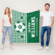 Personalized Soccer Player Name Green Plaid Fleece Blanket