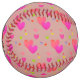 Customize a softball with your own name or text! Just follow the prompts under personalize, for the front and back text boxes. Designed for your convenience by HAMbyWhiteGlove. Design is a blush pink colored ball with hearts (pink red yellow green)