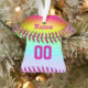 Personalized Softball Ornaments HER NUMBER & NAME. Cool Multicolored Softball on the front with her Jersey Number or Monogram and Name typed into template text boxes. Yellow Softball on the back. Special beveled glassy like threads. CALL Linda for Changes or HELP. I can make Yellow Softball Gifts with ANY color softball threads stitching. Linda: 239-949-9090
