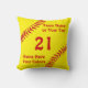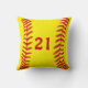 Personalized Softball Team Gifts. Softball Throw Pillows with 3 Text Boxes. Type in her Name, Jersey Number and Team Name or YOUR TEXT or Delete. Fantastic softball senior night ideas for girls softball team gifts. CALL Linda: 239-949-9090, to make design or color changes to the red softball stitching, for you or see Instructions below if you wish to change the yellow background and the red text colors.