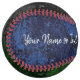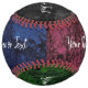 Customize a softball with your own name or text! Just follow the prompts under personalize and enter text to appear on the front and back of the ball. They will appear within each of the four colored sections, pink, blue, green and black. Designed by HAMbyWhiteGlove.