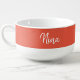 Cozy up with your favorite comfort food in this customizable soup mug, designed to bring a personal touch to every warm, hearty meal. Available on Zazzle, this generously sized mug features a stylish accent color just below the rim that you can change to match your taste or décor. Make it truly yours by personalizing the font style and color of your chosen name, message, or phrase—perfect for gifting a loved one or treating yourself. Whether you're enjoying soup, chili, or a big cup of coffee, this personalized mug adds charm and warmth to every bite or sip.