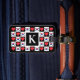 Make your own personalized luggage tags for anyone who loves the country of South Korea. Featuring a unique checkered pattern with the South Korean national flag and red hearts on black squares. With a custom text box where you can type in your own initial or any other letter (or number) you might want. Just click to personalize the template and replace the placeholder text with your own. These are great for patriotic Koreans who like to travel, and for people planning a trip to South Korea!