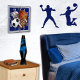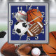 Personalized, Sports Themed Wall Clock, for Sale. You, or CALL Designer Linda: 239-949-9090 EST, can CHANGE the Blue Background and White Text COLORS to your sports themed bedroom COLORS. You can also TRANSFER this design to your choice of Thousands of other cool sports themed wall decor ideas, pillows, throw blankets, phone cases and so many other gifts for sports lovers. Designer Linda can CHANGE the Border COLORS and the Sports Balls to your favorite sport, as available.