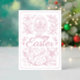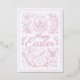 This elegant Easter card showcases a timeless pink floral pattern, adorned with a cheerful "Happy Easter" greeting that combines vintage charm with a contemporary flair. It can be customized with your personal message and family name, or individual names on the back. This card is perfect for conveying Easter wishes in a way that is both traditional and modern, making it an excellent choice for creating a warm and sophisticated holiday atmosphere.