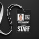 This simple and professional design features a black background. The template is easily customizable, just staff name, job title, employee ID. The bottom edge has a QR code that can be changed to any desired title. The back has your contact information and instructions for returning if found. This classic design works well for any type of event.