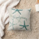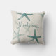 Personalized Starfish Green Beige Coastal Throw Pillow