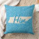 Tennessee Home State Pillows for Bride and Groom or For Anniversary Present or 1st Christmas Or moving away going away presents. him or Her. Groom's Pillow Blue Burlap or Linen Texture Background with Beige Map of Tennessee with the word Him on the front a nd Tennessee on the back but you can change the text to say whatever your like. That's right "your text here" make it your one of a kind customize pillow for the groom or your husband or boyfriend.