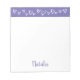 Personalized stationery for girls with hand-drawn hearts and brush script font. In purple and white.