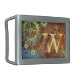 Rusty Steampunk Cogwheels and gears against a vibrant verdigris rusty blue background. Personalize it with your initial or give as a gift.