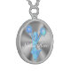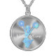 Memorable PERSONALIZED Sterling Silver Cheerleader Necklaces with Her NAME typed into Text Box Template. Pretty Turquoise Cheerleader with a cool gradient burst of turquoise, blue and white. Select sterling silver as shown or silver plated or gold finishes.