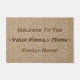 Design on this indoor-outdoor doormat creates illusion of hand-cut stone tiles in shades of sand, brown & almond, arranged in a classic fan-shaped (or clamshell) pattern often seen in driveways & walkways of luxury mansions. 3 custom text fields ready for you to personalize that default to: "Welcome to the", "(Your Family Name)" & "Family Home!"