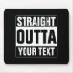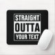 Personalized STRAIGHT OUTTA typography mouse pad. Make your own custom STRAIGHT OUTTA computer accessories. Funny typography design with big letters. Add your own city, parody or quote to this template / meme generator. Cute black and white internet meme gift idea for men, women and teen kids. Cool personalized examples: Straight outta bed. Straight outta money. Straight outta ideas. Straight outta coffee. Straight outta prison. Straight outta the gym. City names; Compton Chicago New York LA Boston Brooklyn. Customizable / personalizable text.