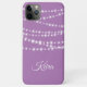 Illustrated sparkling string lights and your name in fancy type, accent this lilac iPhone Case, making it a perfect accessory or gift. This case can easily be personalized without a monogram or name if preferred.