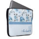Personalized Striped Pattern With Blue Flowers Laptop Sleeve