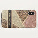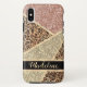 Personalized faux Rose Gold, Blush Pink Glitter. Mixed pieces with an animal leopard skin spot print and gold glitter and copper trim bars. Diagonal striped lines and patches pattern design color block. Luxury and unique geometry. Customize this fancy script font with your name, and monogram, or initial, or text for a chic girly stylish design. Modern and trendy geometric style.