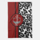 This design features a burgundy diagonal striped pattern on top and a black and white leopard print on the bottom. In the center, there is a circle monogram logo which can be personalized with the recipient's initial and first name.