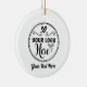 Lightweight, smooth, pure white ornament with nice sheen. Perfect size to be seen from across the room ... and to attract closer inspection! Price was great for ordering enough for the whole family! Clear, bold black design just as requested. Matches the order exactly. Just so nice!